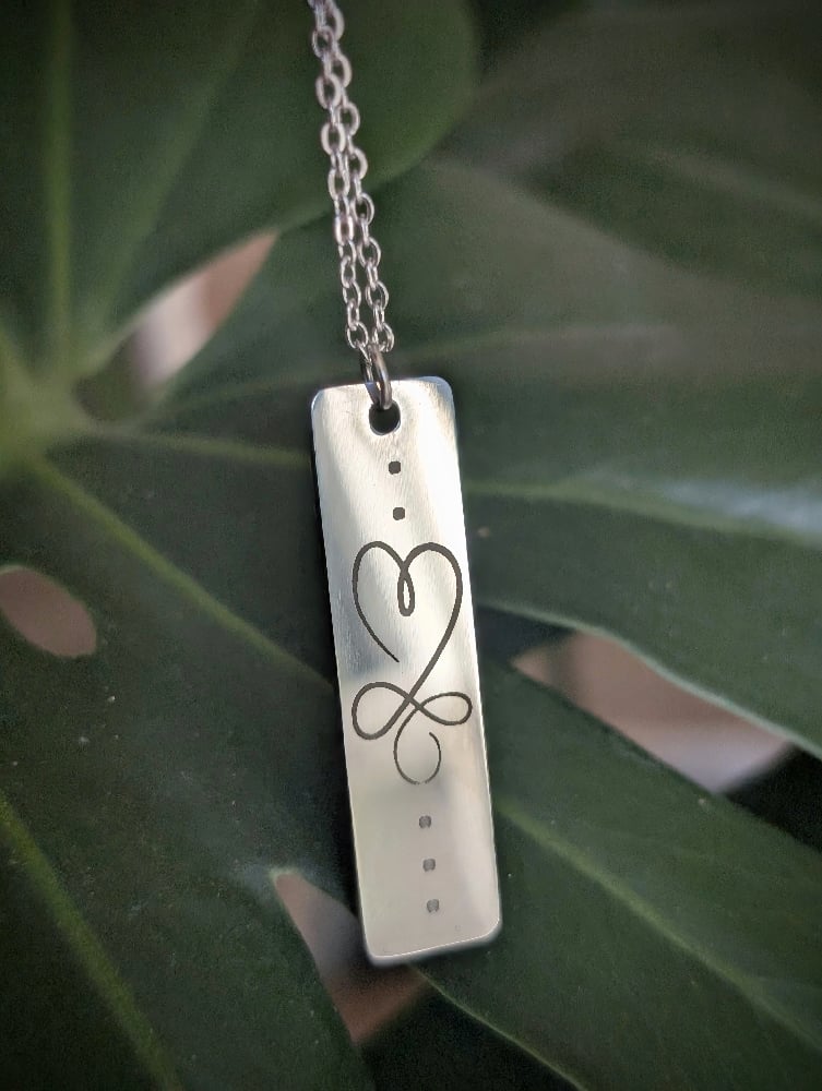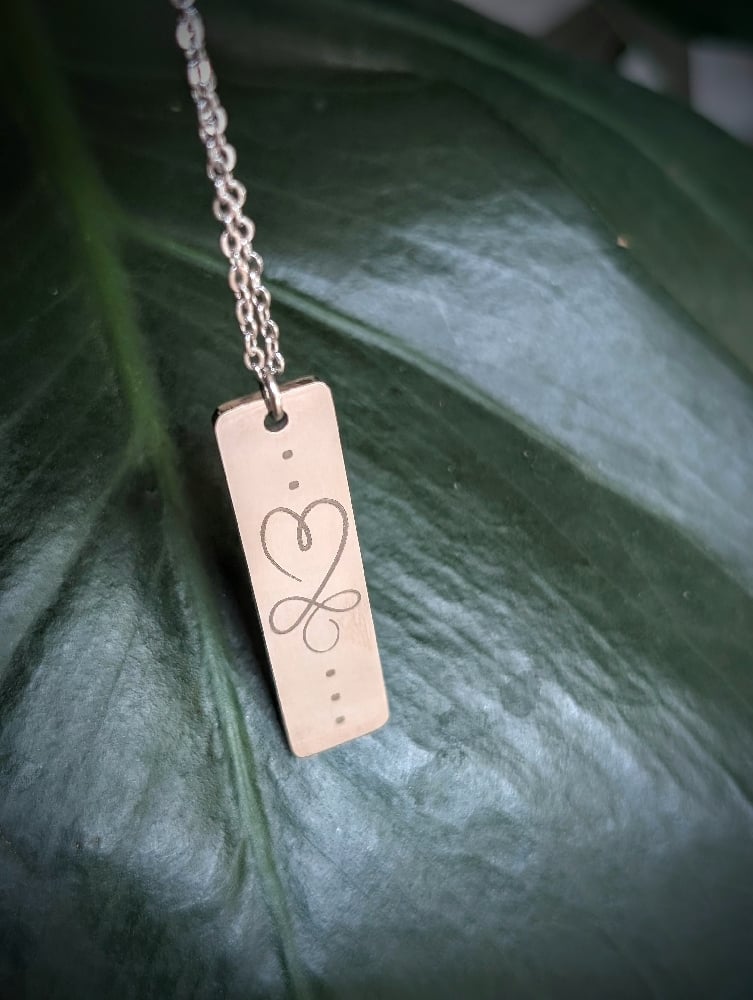 A symbol of love, connection, and timeless elegance. This vertical bar pendant features a graceful calligraphy-style heart, designed to remind you of the bonds that matter most. Crafted from high-quality stainless steel and plated with 18k gold, it’s made to last with a no-tarnish finish that keeps its shine day after day.