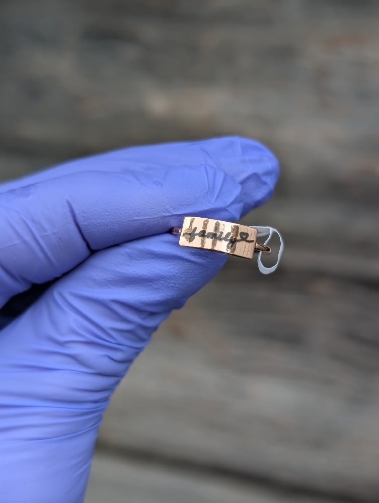 Leave text or design requests in notes and I will reach out to you to finalize design. Available in Rose Gold, and Silver.
