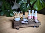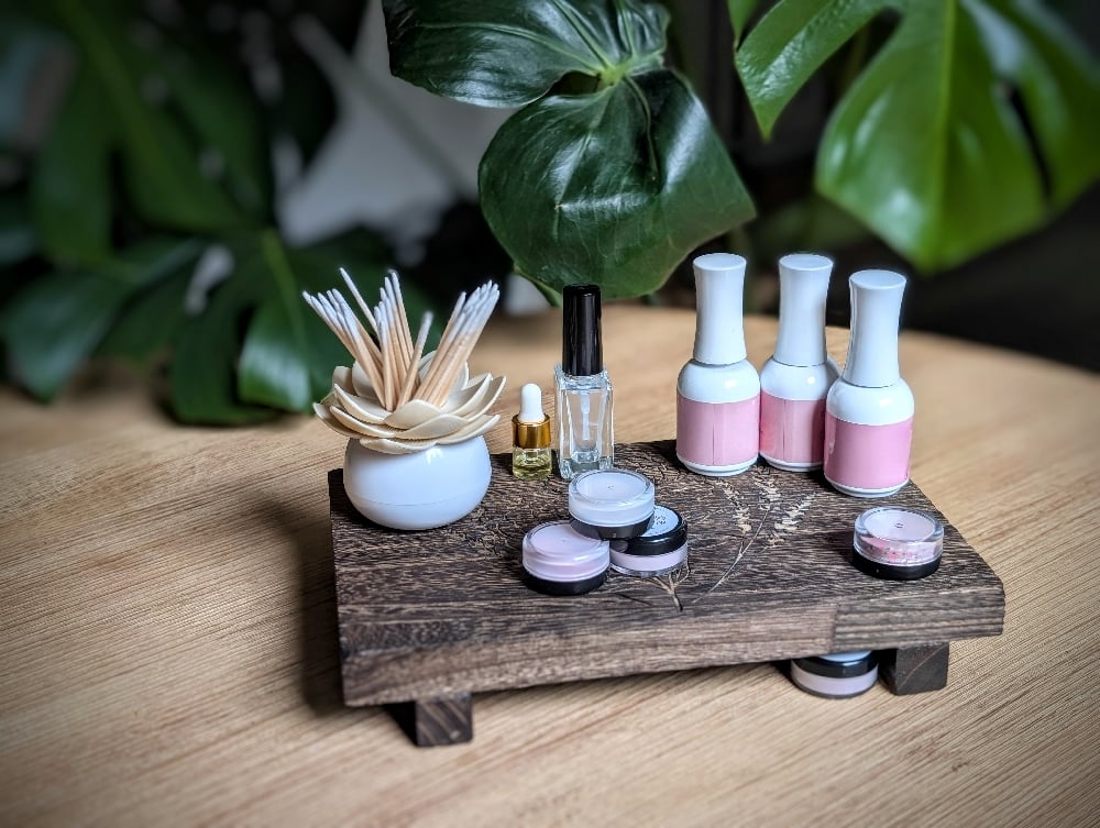 The Glam.Station Stand is a stylish and practical solution for keeping your nail desk clutter-free. Handcrafted from rich, durable wood, this compact stand is designed to neatly display and organize your nail essentials—whether it’s polishes, powders, brushes, or tools. Its elevated platform not only saves space but also adds a touch of elegance to your workspace, making it perfect for both professional salons and home nail artists. Functional, beautiful, and built to last, it’s the ultimate desk companion for a polished setup.